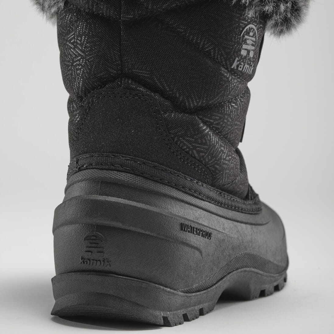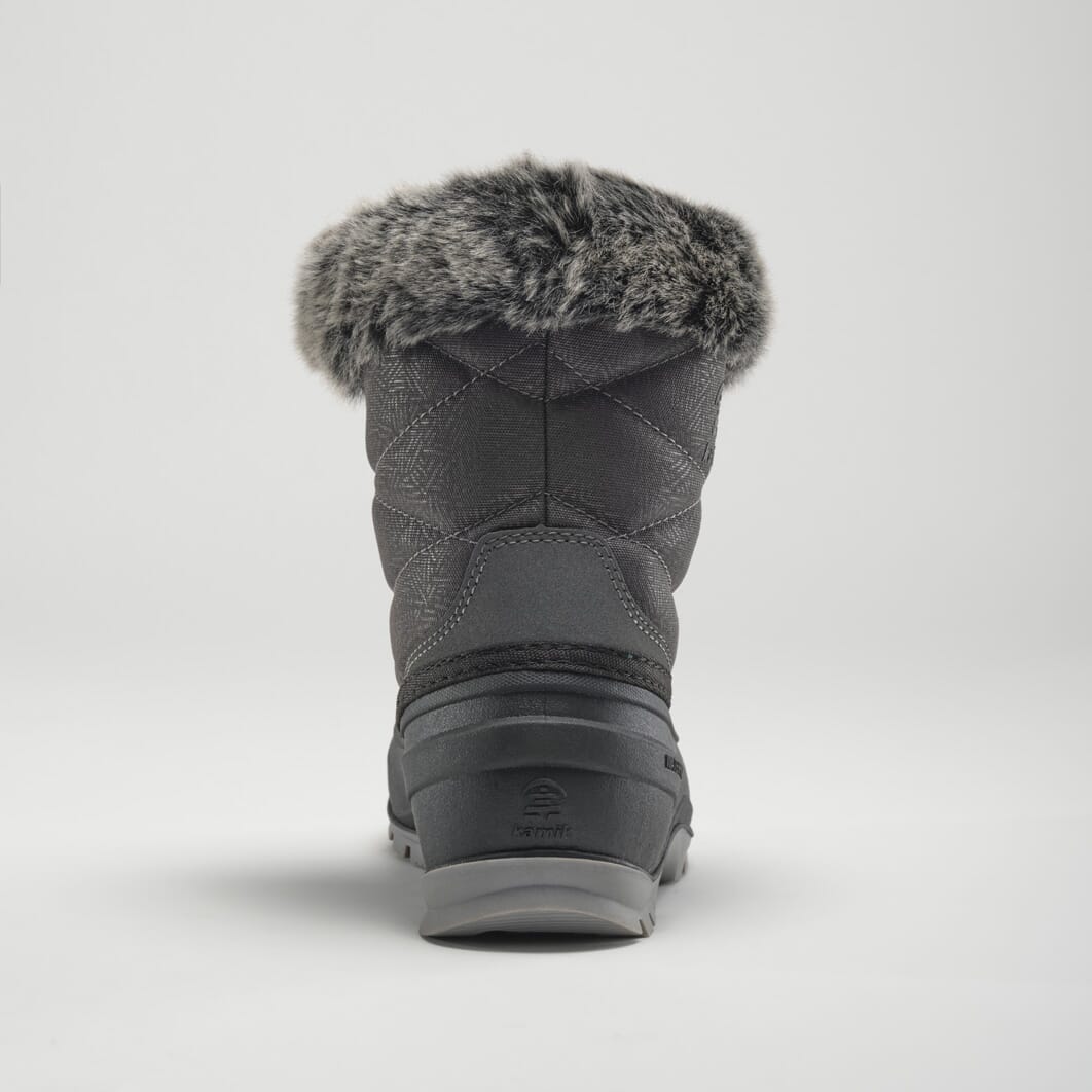 Faux fur snow collar and gusset tongue: A stylish yet practical feature that keeps the snow out.