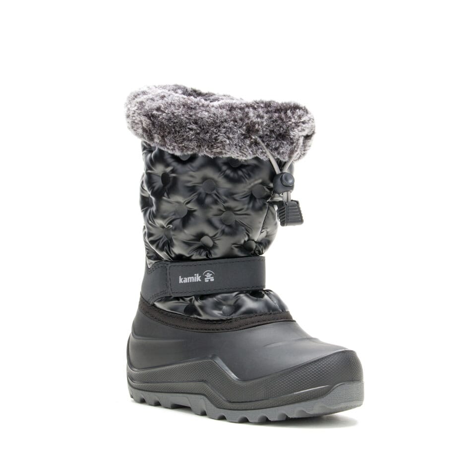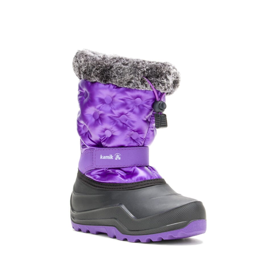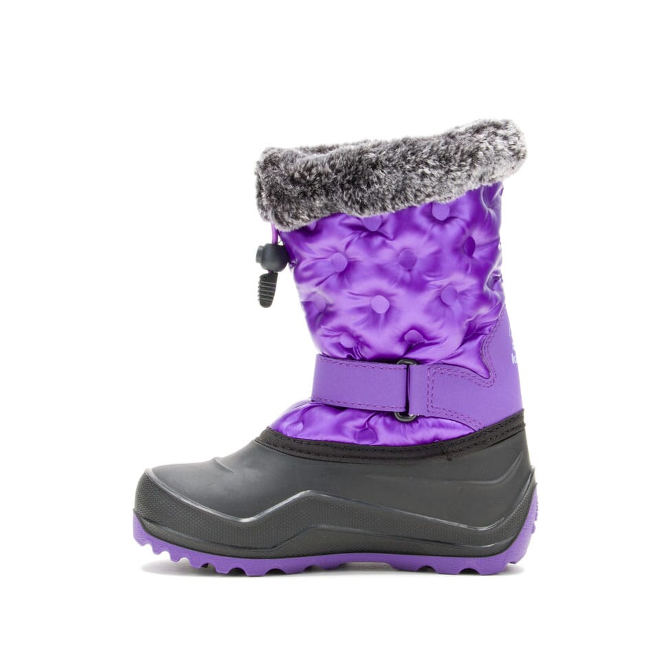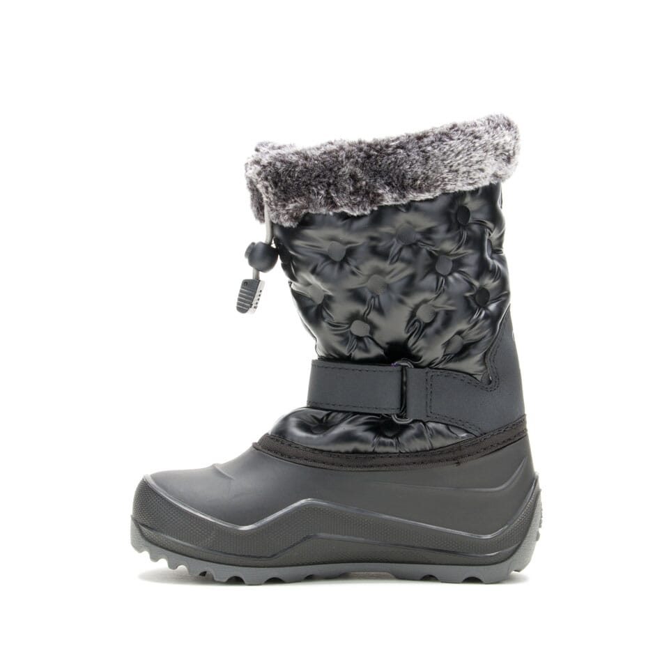 Keep your little adventurers warm and dry during winter fun with our stylish quilted nylon boots, featuring an eye-catching shiny, pearlized finish. Perfect for building snowmen and making snow angels, Penny 3 boots offer insulated and waterproof comfort down to -40°F. With an easy-grab lace lock, midfoot strap, faux fur snow collar, and grippy sole, these boots ensure cozy, secure, and stable play in a any snowy adventure!