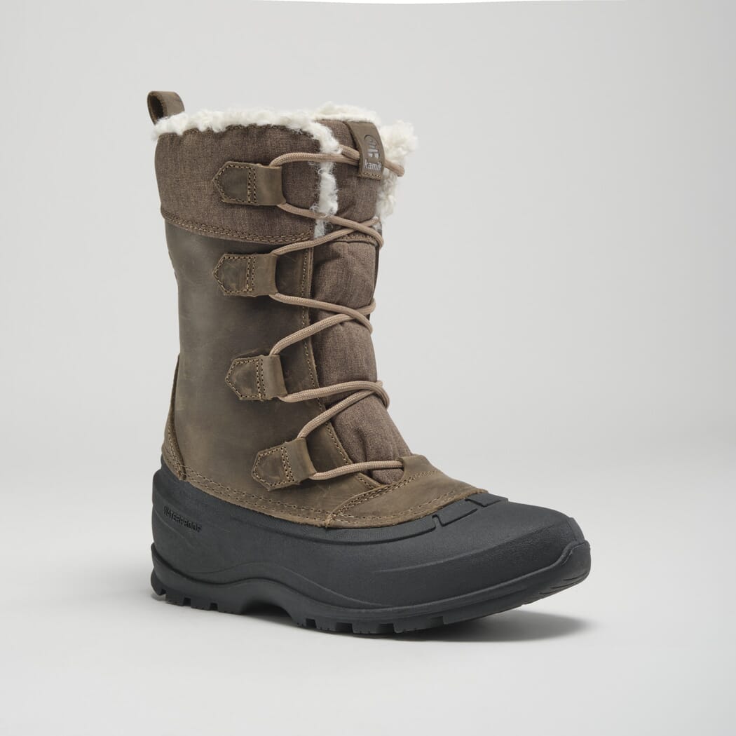 Designed for epic winter adventures, Snowgem women's winter boots have everything you need to make the snowy season memorable. From its waterproof genuine leather and nylon upper to its self-cleaning treads, this attractive pair is not only stylish but highly practical. You'll love the heel design, which is perfect for snowshoeing, and the next-level warmth provided by a cozy fleece lining and thermal insulation. Whether you're day-tripping up north or enjoying the wintry weather at home, these boots will not disappoint.
